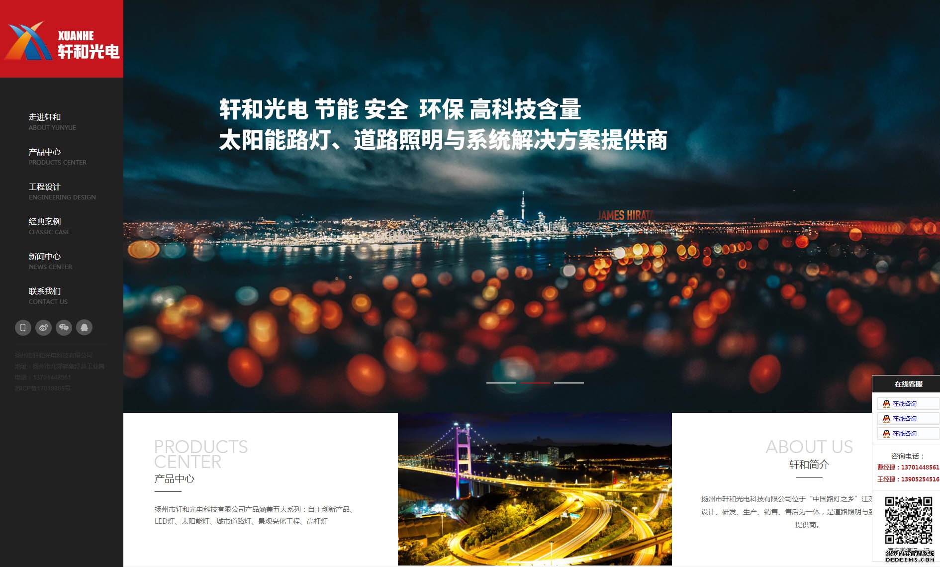 軒和光電科技 揚(yáng)州市軒和光電科技有限公司位于“中國(guó)路燈之鄉(xiāng)”江蘇揚(yáng)州。公司集設(shè)計(jì)、研發(fā)、生產(chǎn)、銷售、售后為一體,是道路照明與系統(tǒng)解決方案的提供商。我們主要生產(chǎn)和銷售室外道路、廣場(chǎng)、車站、碼頭、庭院及室內(nèi)工礦照明燈具。品種有:太陽能路燈、led路燈、單臂燈、雙臂燈、高桿燈、組合燈、庭院燈、景觀燈、草坪燈、地埋燈、太陽能燈、led燈、led燈頭、太陽能板、噴泉雕塑、各種交通標(biāo)志桿、交通信號(hào)燈、電力桿、以及配套使用的鎮(zhèn)流器、觸發(fā)器,同時(shí)生產(chǎn)光控、時(shí)控開關(guān)箱系列產(chǎn)品。 查看網(wǎng)站Service